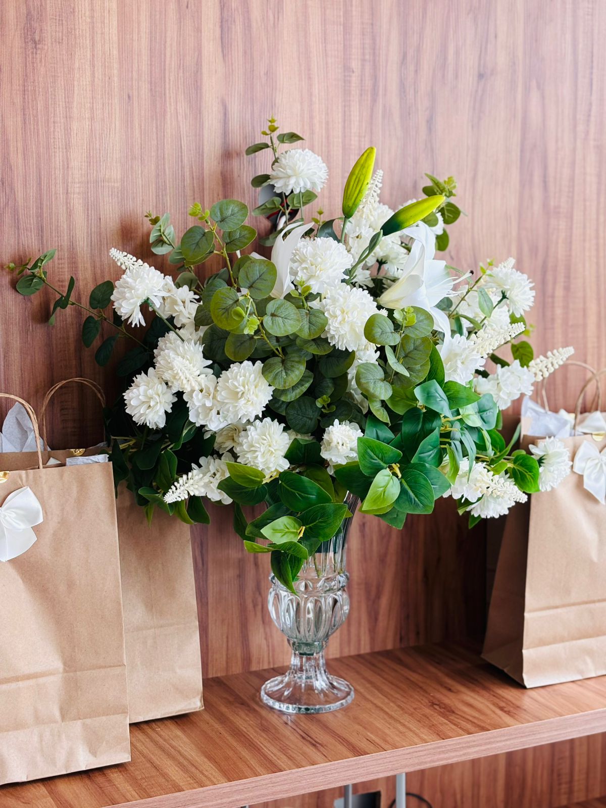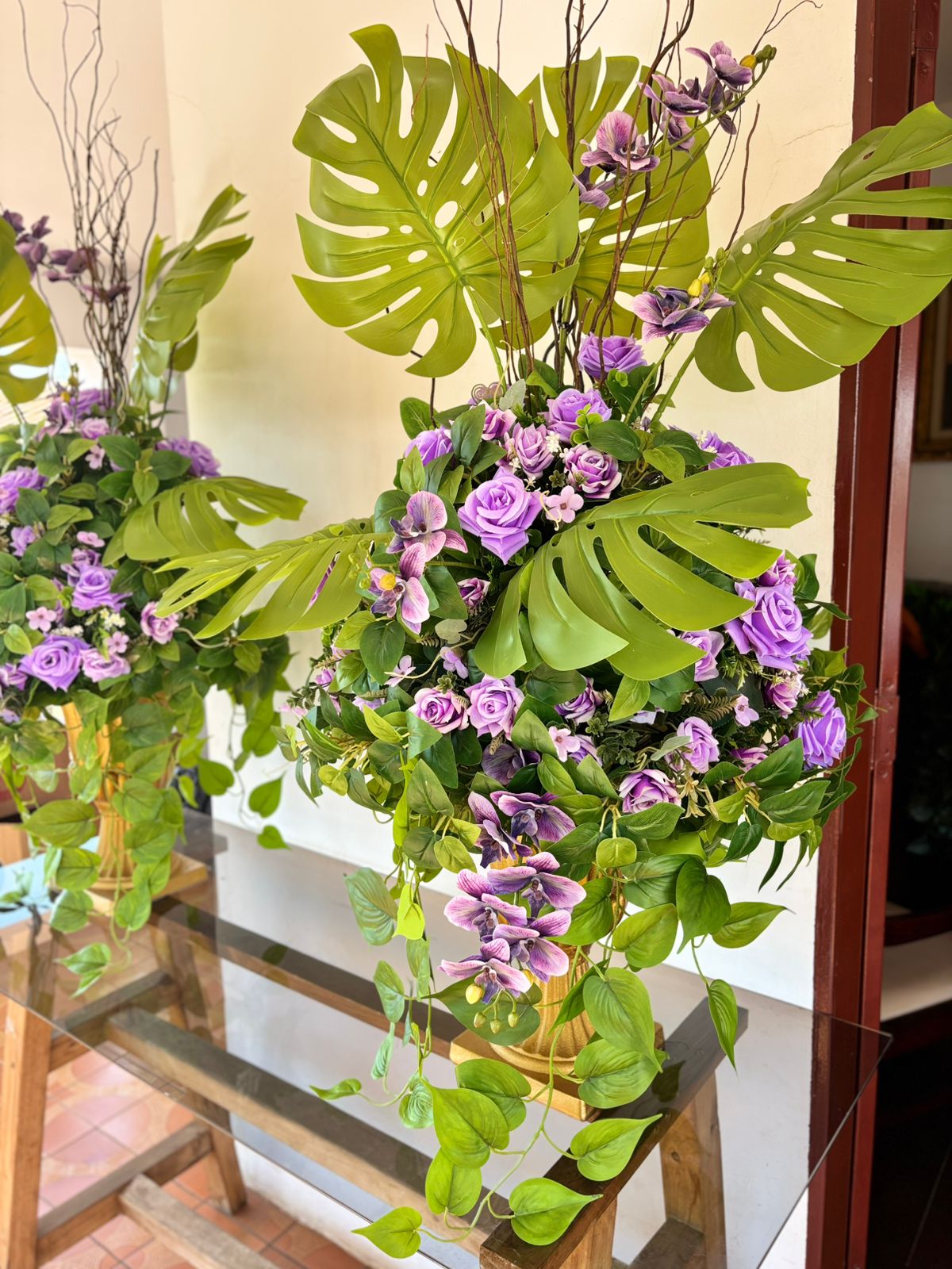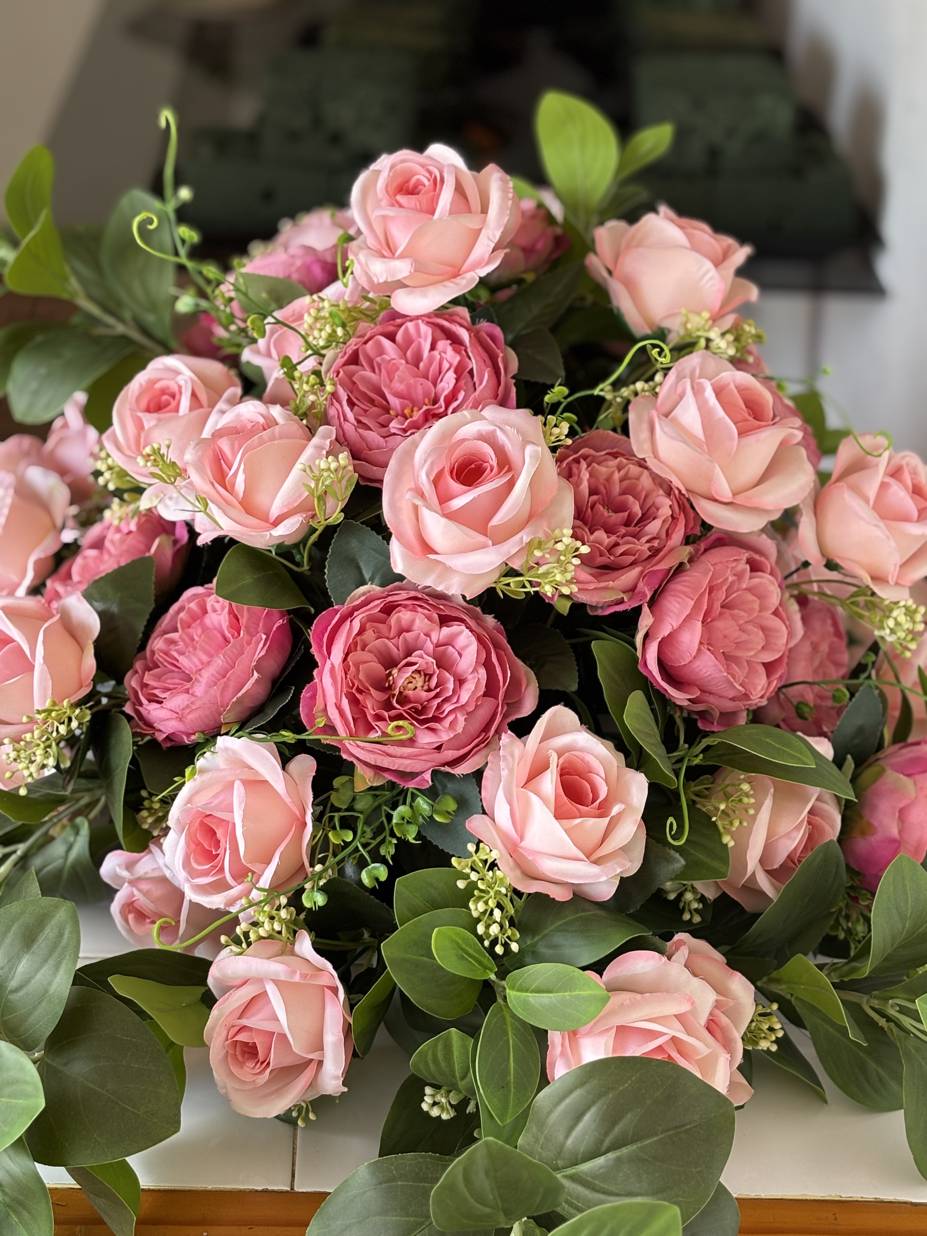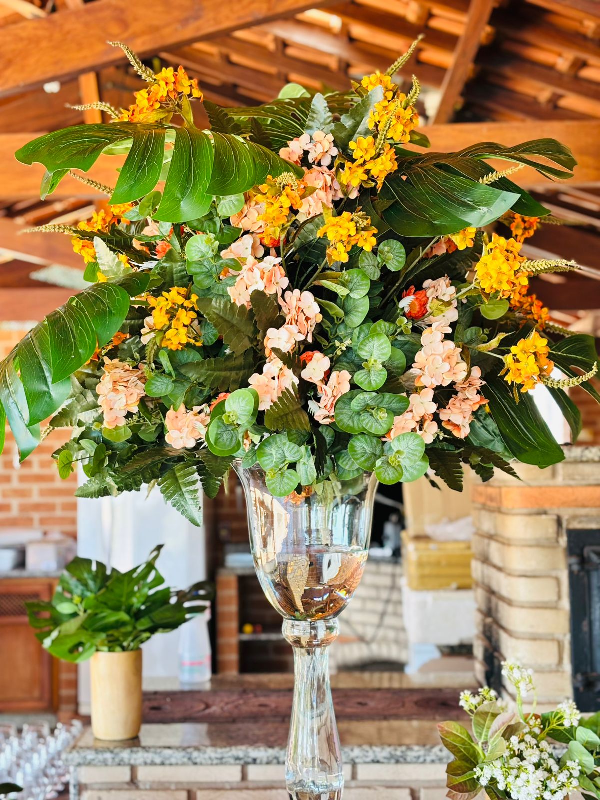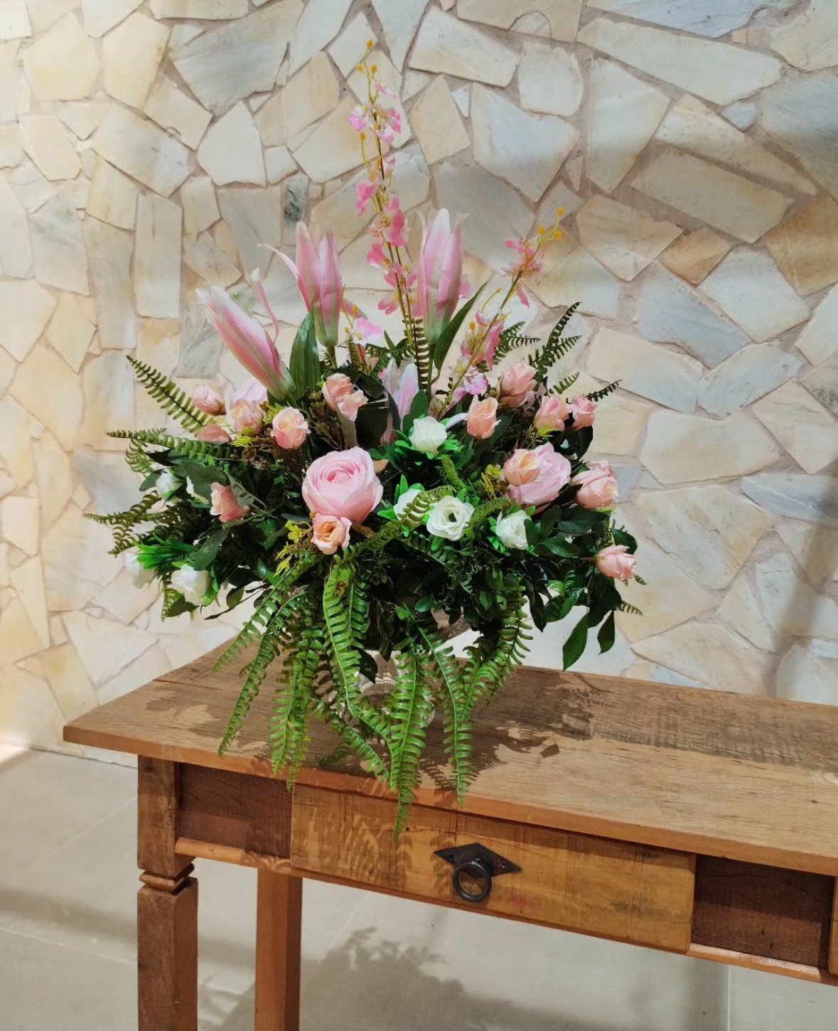 Um mix de flores permanentes toque real aliadas a um mix de folhagens naturais e permanentes resultam em arranjos que impressionam pela naturalidade.