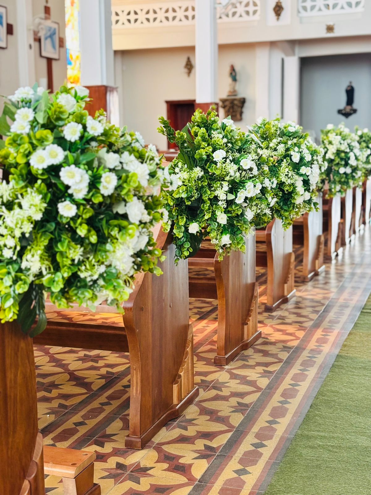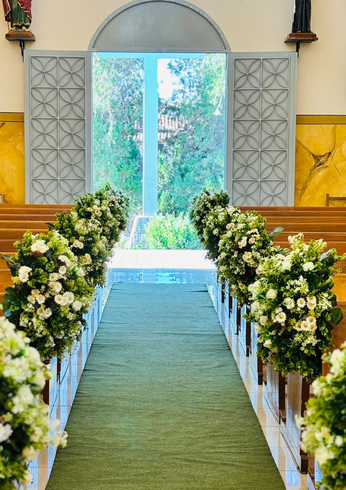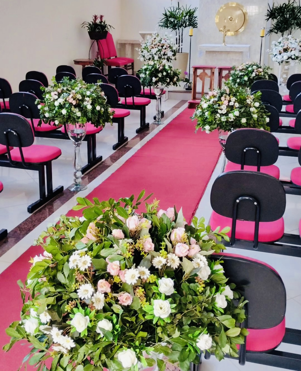 Algumas de nossas opções de arranjos florais para o cortejo que te levará até o altar.