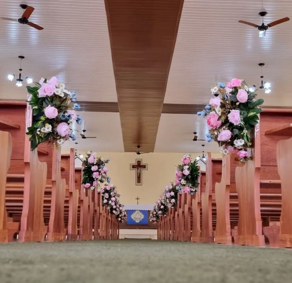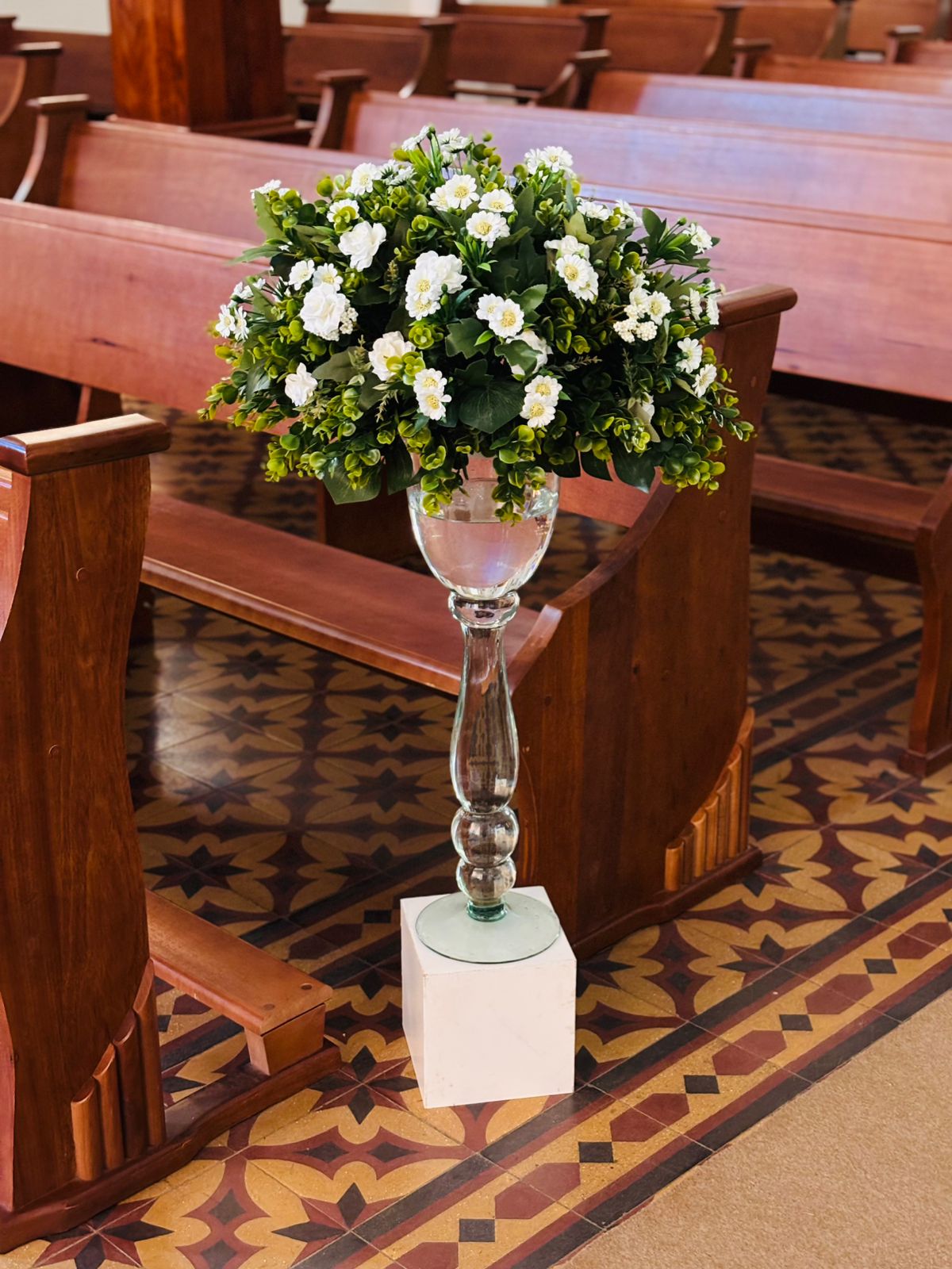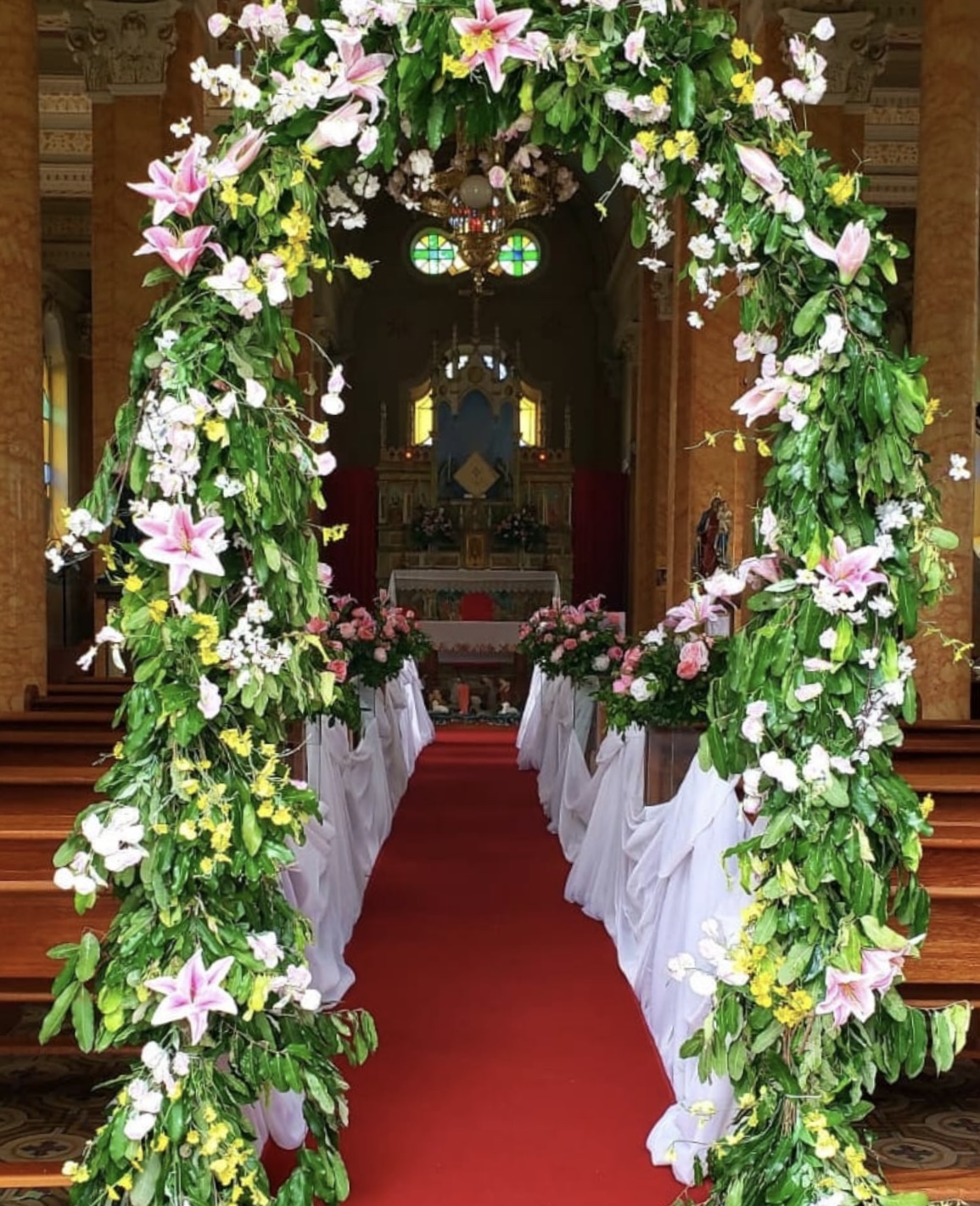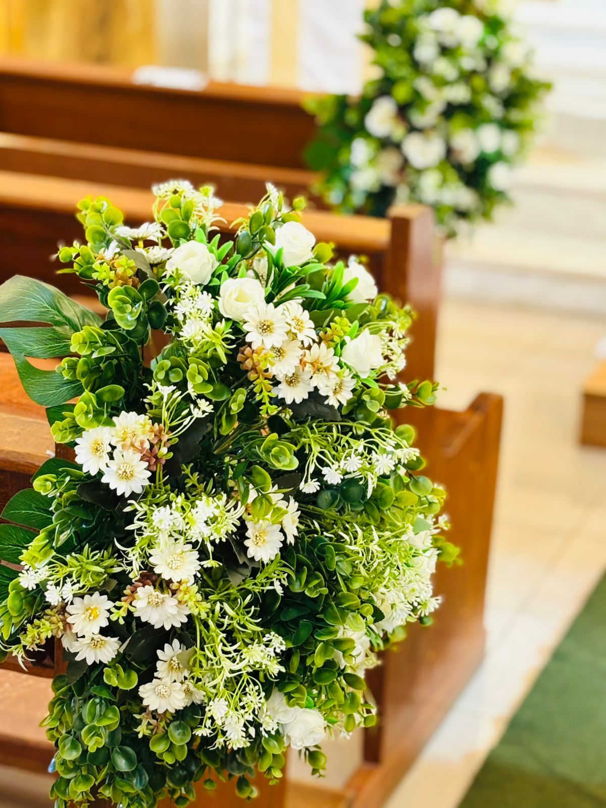 Algumas de nossas opções de arranjos florais para o cortejo que te levará até o altar.